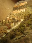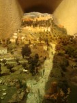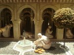 En la siguiente sala, cubriendo todas las paredes, disfruté de una maqueta que describe, de forma fantástica, la vida cotidiana en un Alcázar (palacio), en las casas de los moros, en los zocos (mercados), en fin, su vida privada y pública. En la escena del Alcázar vemos el ritual del protocolo de la visita de un rey cristiano a un