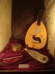 La siguiente es una sala pequeñita y redonda, como si estuviéramos en una torrecita dentro de la torre y allí escuchamos los sonidos de la música árabe y vemos algunos instrumentos, entre los cuales por supuesto hay un laúd. Tiene un magnífico techo imitación de uno de la Mezquita.