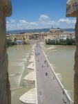 Por último, la escalera de caracol que te permite ir subiendo por la torre se hace más estrecha y llegas a la azotea que tiene piso de madera y una vista preciosa de la parte antigua de la ciudad. Abajo el río Guadalquivir (Wad al-kabir) y el puente romano, por el llegan a pie los visitantes.
