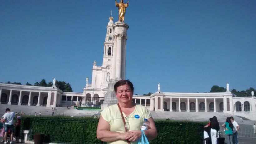 En el Santuario de la Virgen de Fátima, acercando las peticiones de la familia. Muy emocionada.
