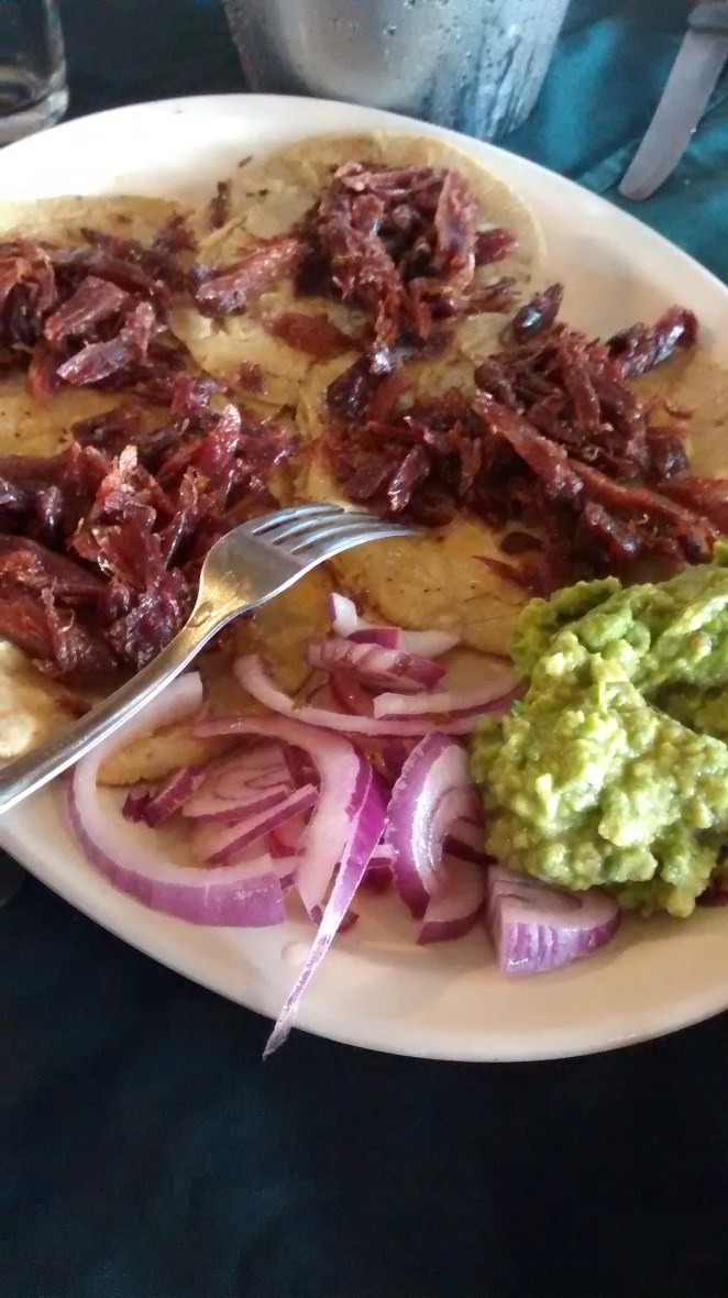 Tacos de pato en el restaurante El Vergel, deliciosos.