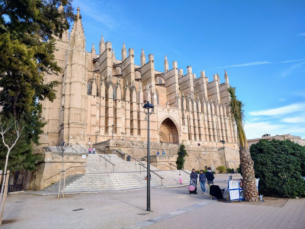 A un lado del mar y del Palacio de la Almudaina, se encuentra la catedral de Palma de Mallorca.