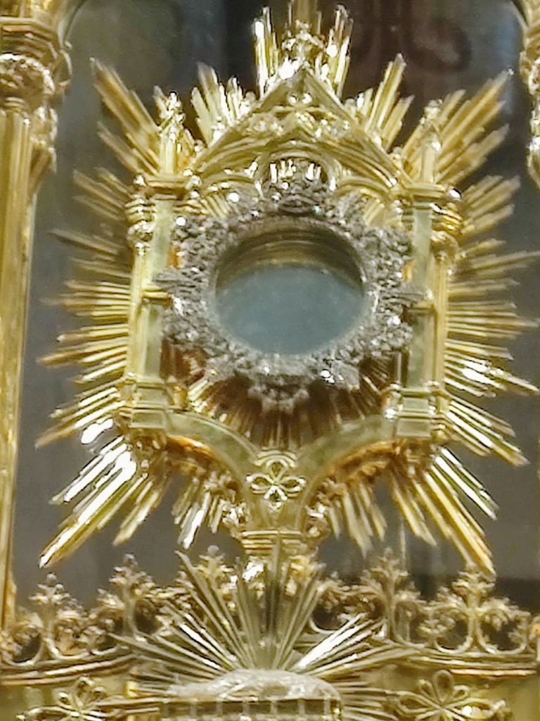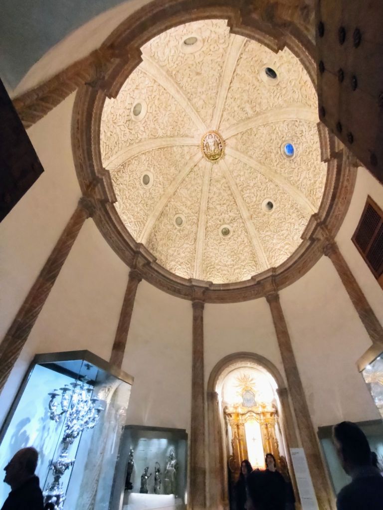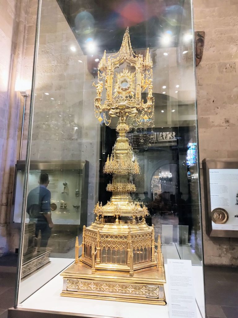 Se entra por el museo y se pagan 9 € e inmediatamente ves la grandeza de la catedral, ya que el primer objeto frente a ti es una custodia de 2 metros de alto de plata pura y frente a ella otra en oro, maravillosa obra de arte.
