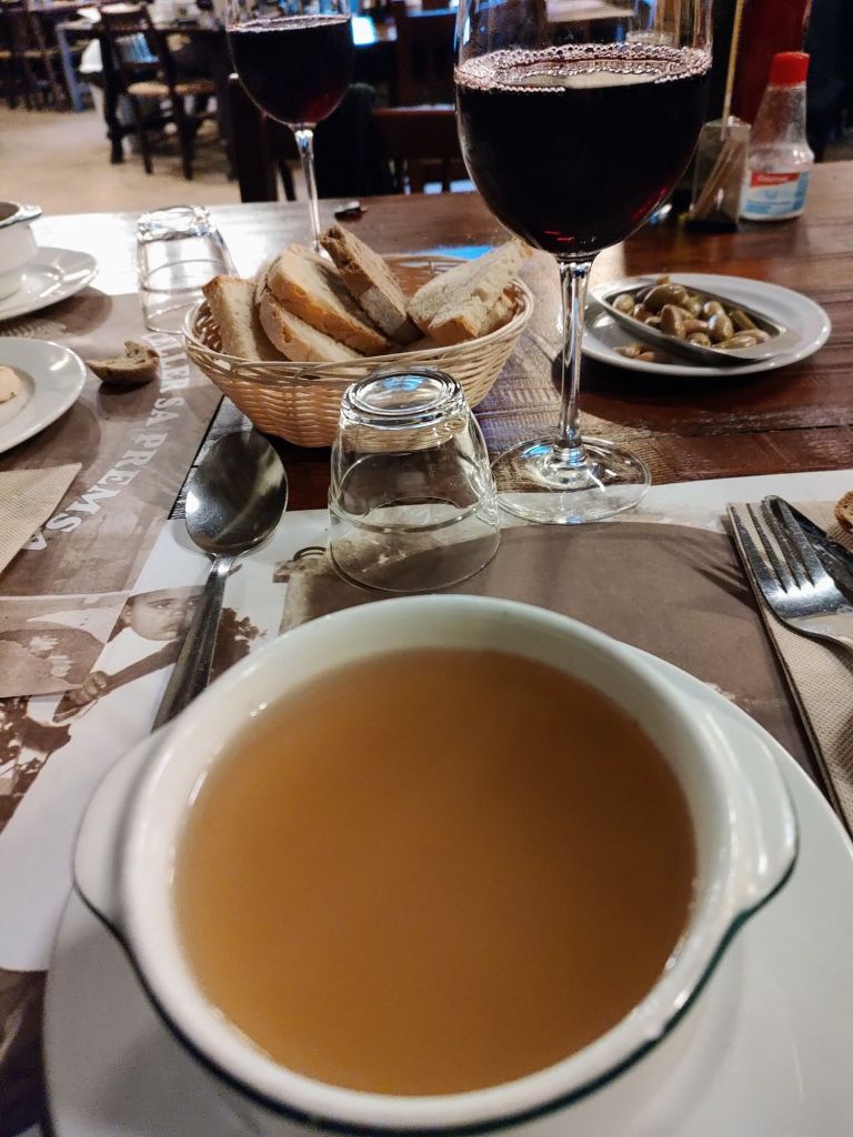 Pedimos, para iniciar, un caldo calientito porque llegamos con frío. Cómo ven era solo y, además no era de pollo, sino de cerdo !jamás se me hubiera ocurrido! Pero lo disfruté.