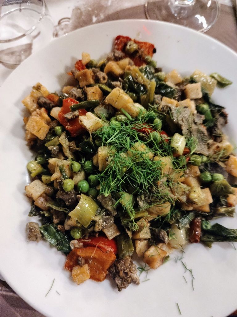 Iván pidió pollo al ajillo, pero yo tenía mucha curiosidad por el Frito Mallorquin así que eso cené. Resultó ser un revoltijo de papa (patata), chícharos, pimiento, hígado y, supongo, otras visceras. Me fue gustando en cada bocado y al mismo tiempo intentaba recordar dónde lo había comido ya. De pronto lo recordé: el platillo tradicional de Tapalpa es el borrego al pastor y uno de los complementos se llama machito, que son las tripas del borrego rellenas de este mismo revoltijo y que a mí me gusta mucho, la tripa la sirven muy doradita.