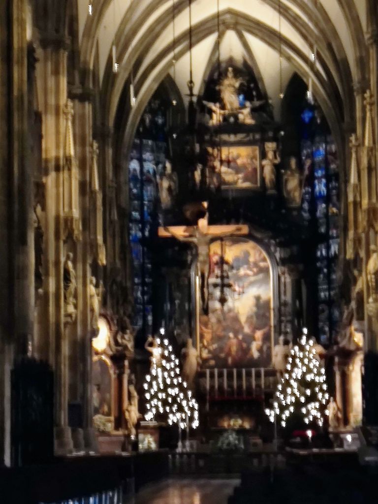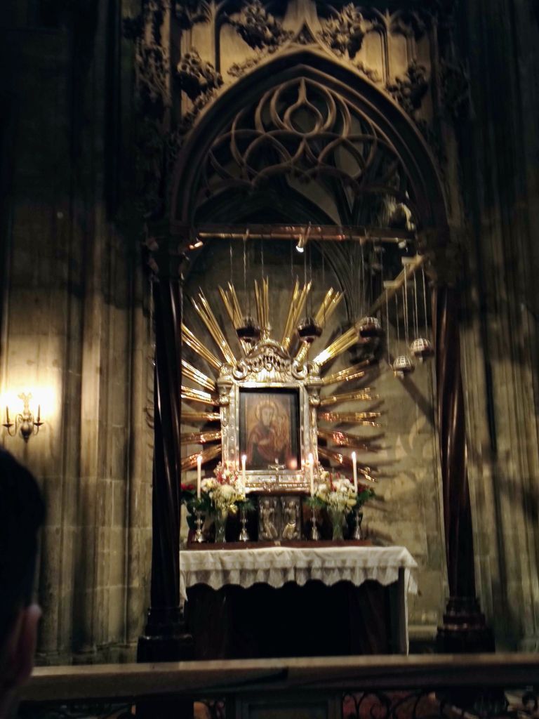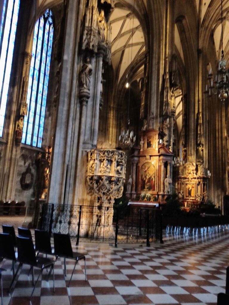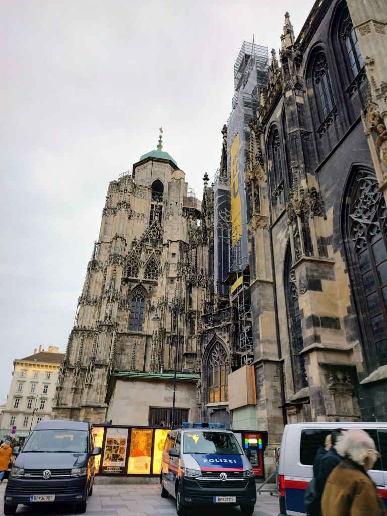 La Catedral de San Esteban en Viena nos sorprendió mucho. Caminábamos por la calle que llega al frente, desde el edificio de la ópera, siguiendo simplemente la torre.