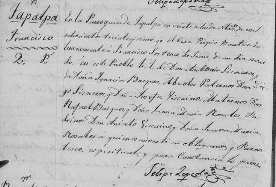 Francisco Cisneros Vázquez (Tapalpa, Jal. 28 nov. 1835), quien se casó, probablemente en 1861, con María Cayetana Antonia Esther de la Trinidad Preciado Vázquez (Tapalpa, Jal. 7 ago. 1838 – ), hija de Francisco Aniceto Preciado Cobián (1820 – 1880) y de María Vicenta Ventura Vázquez Rosales (Tapalpa, Jal. 1807 – Tapalpa, Jal.1847), hermana de mi bisabuelo Jossé Nicolás Vázquez Rosales. Francisco y María Cayetana eran hijos de hermanas, por lo tanto, primos-hermanos.