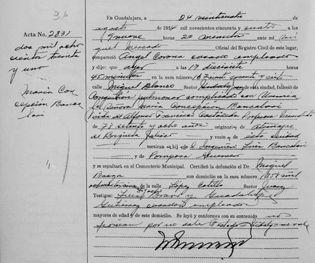 En el 5to Censo de Población, en Guadalajara el 15 de mayo de 1930, María Bancalari aparece registrada y declara vivir en la calle Miguel Blanco 167 (hoy ubicada entre la calle Pavo y la avenida Del Federalismo, frente al Hospital de la Santísima Trinidad), ser viuda, profesora normalista, hablar además de español, el inglés, francés y alemán. También declara a su hijo, pero indica que se llama Alfonso y no Alejandro, tener 23 años, ser soltero, médico, y hablar los mismos idiomas que su madre.
