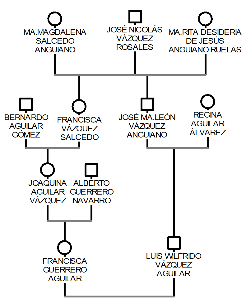 Fueron mis abuelos maternos Don Luis Wilfrido Vázquez Aguilar y Doña Francisca Guerrero Aguilar, de quienes se murmuraba que eran tío y sobrina, sin embargo, no podía probarlo. Primero, porque pensé que lo eran por el apellido Aguilar y no es así, sino por el apellido Vázquez.