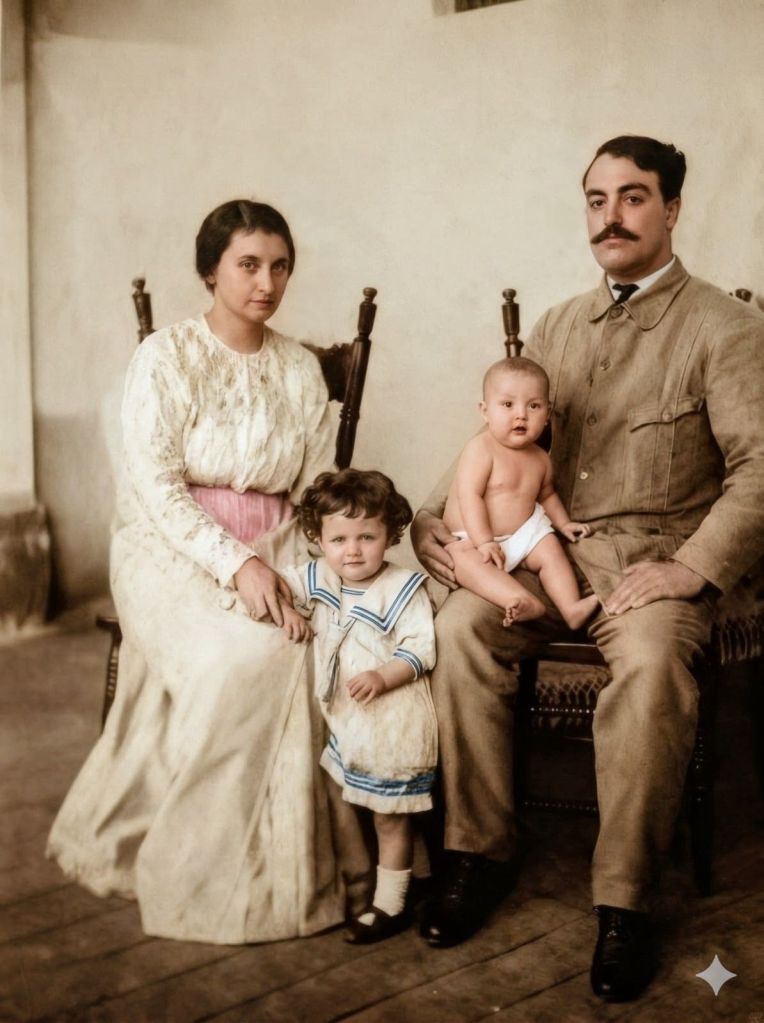 Odila nació el 12 de enero de 1913 y el niño el 19 de enero de 1914, por lo que tal vez la foto fue tomada en julio de 1914, porque el niño ya se sentaba. Tuvieron un tercer hijo, Alfonso, pero hasta septiembre de 2015, y él desgraciadamente murió en el mismo año.